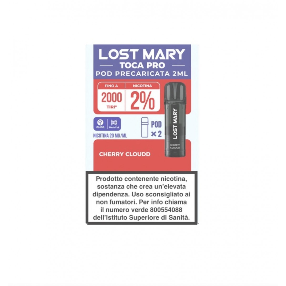 PACK DI 2 POD DI RICAMBIO PER TOCA AIR BY LOST MARY TECNOLOGIA QUAQ PER LE MESH PER UNA GRANDE RESA AROMATICA. GUSTO CILIEGIA